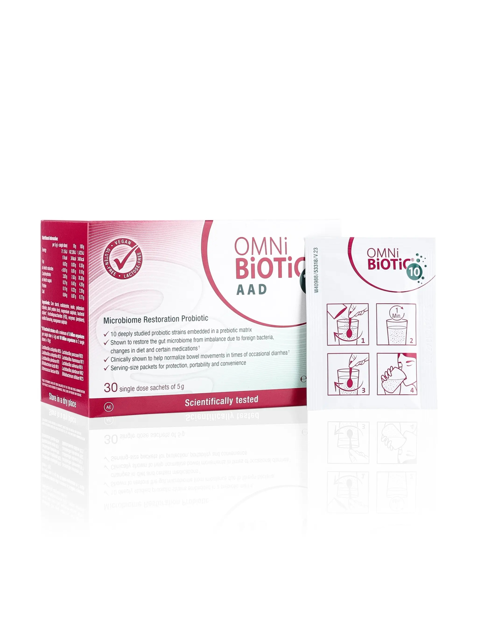 OMNi-BiOTiC® 10 AAD is a specialized probiotic designed to support gut health during and after antibiotic treatments. It contains 10 selected bacteria...