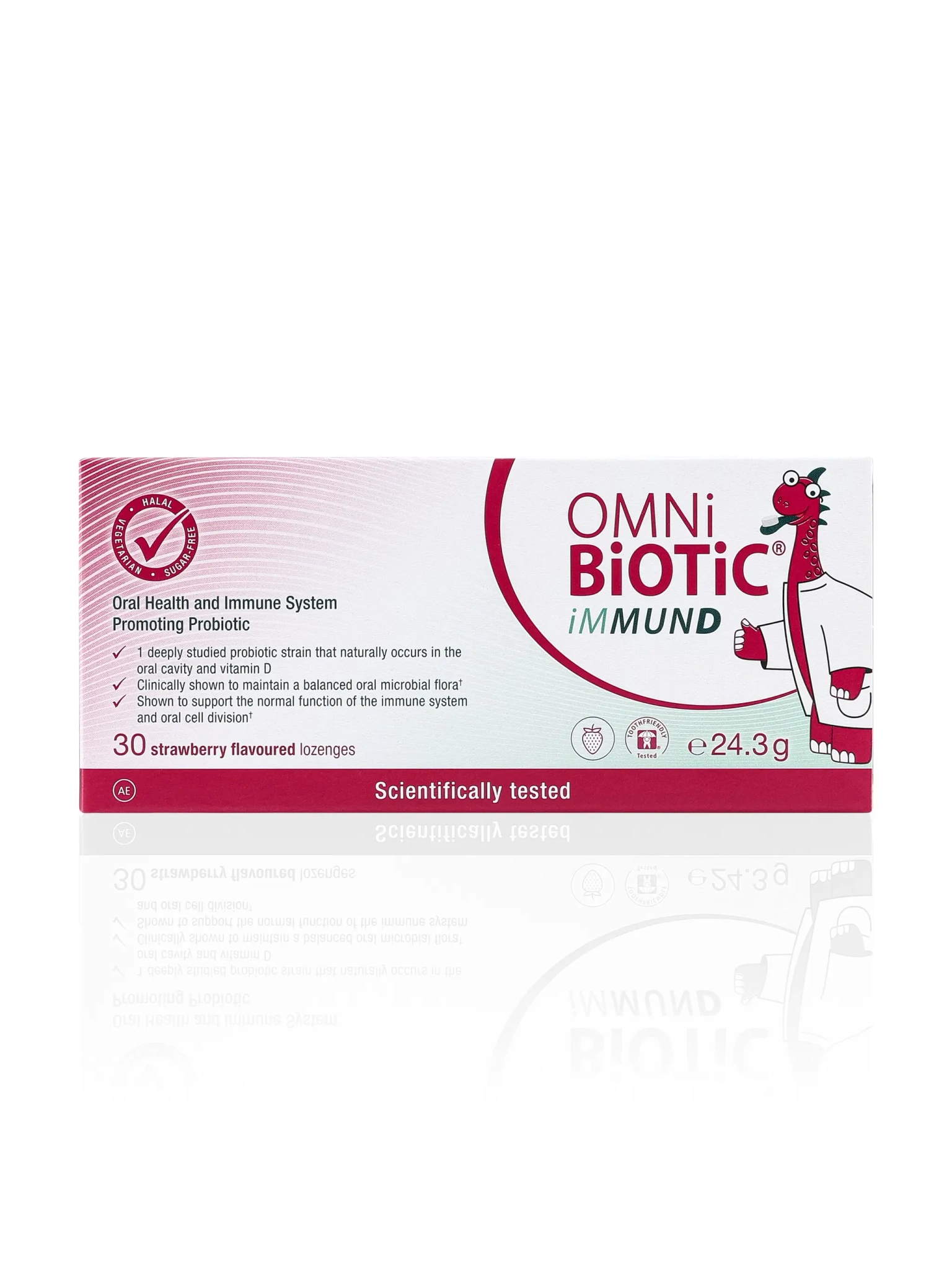 OMNi-BiOTiC® iMMUND supports oral health and immunity with beneficial bacteria and vitamin D, promoting a balanced oral microbiome.