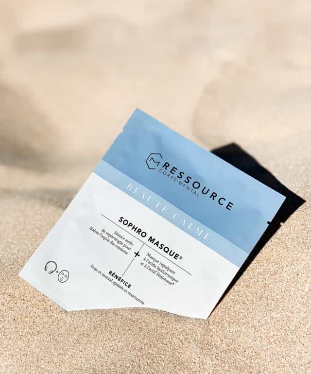 Ressource Corps-Mental offers biocellulose masks infused with natural serums and accompanied by sophrology audio sessions, blending skincare with mental wellness practices to enhance both physical and mental well-being.